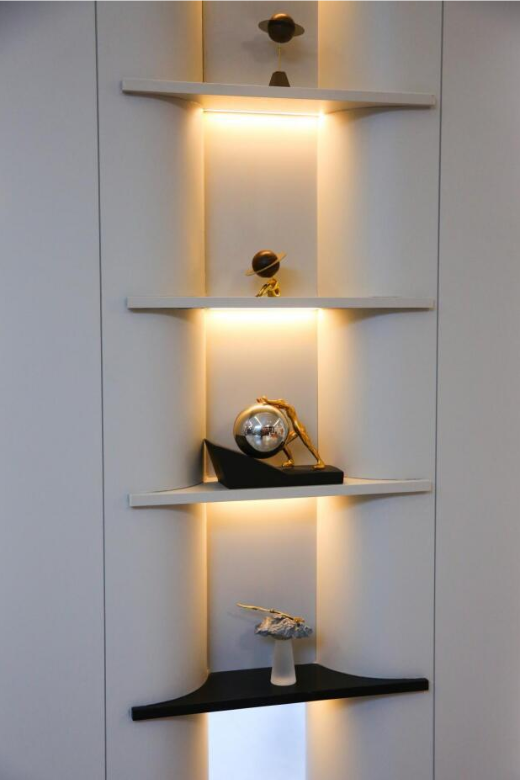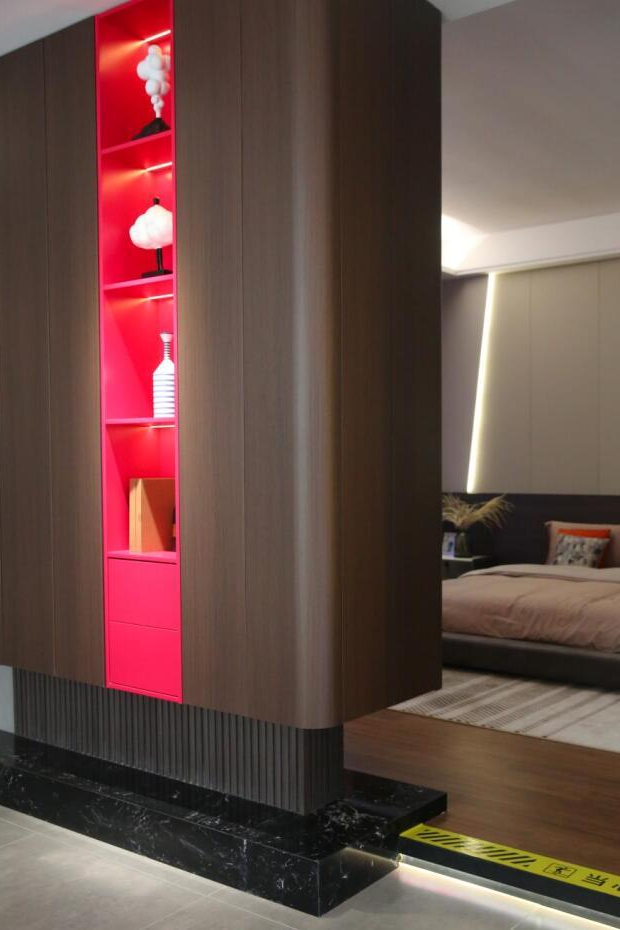 无论是衣柜中那富有韵律的百叶板,门类中精致细腻的门套线,还是墙板间错综复杂却又和谐统一的收口设计,这些围绕门墙柜一体化的配套线条,无不凸显着异形件独特而迷人的魅力。