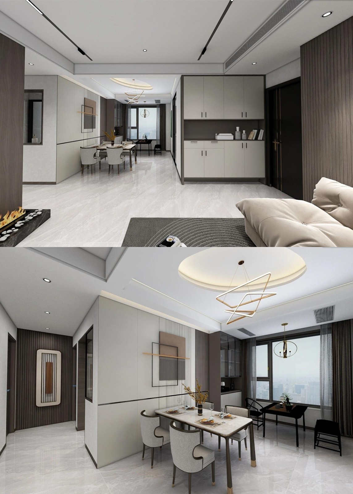 - 客餐厅一体,墙柜同色,似是默契的知己,让空间流淌着和谐的气息。