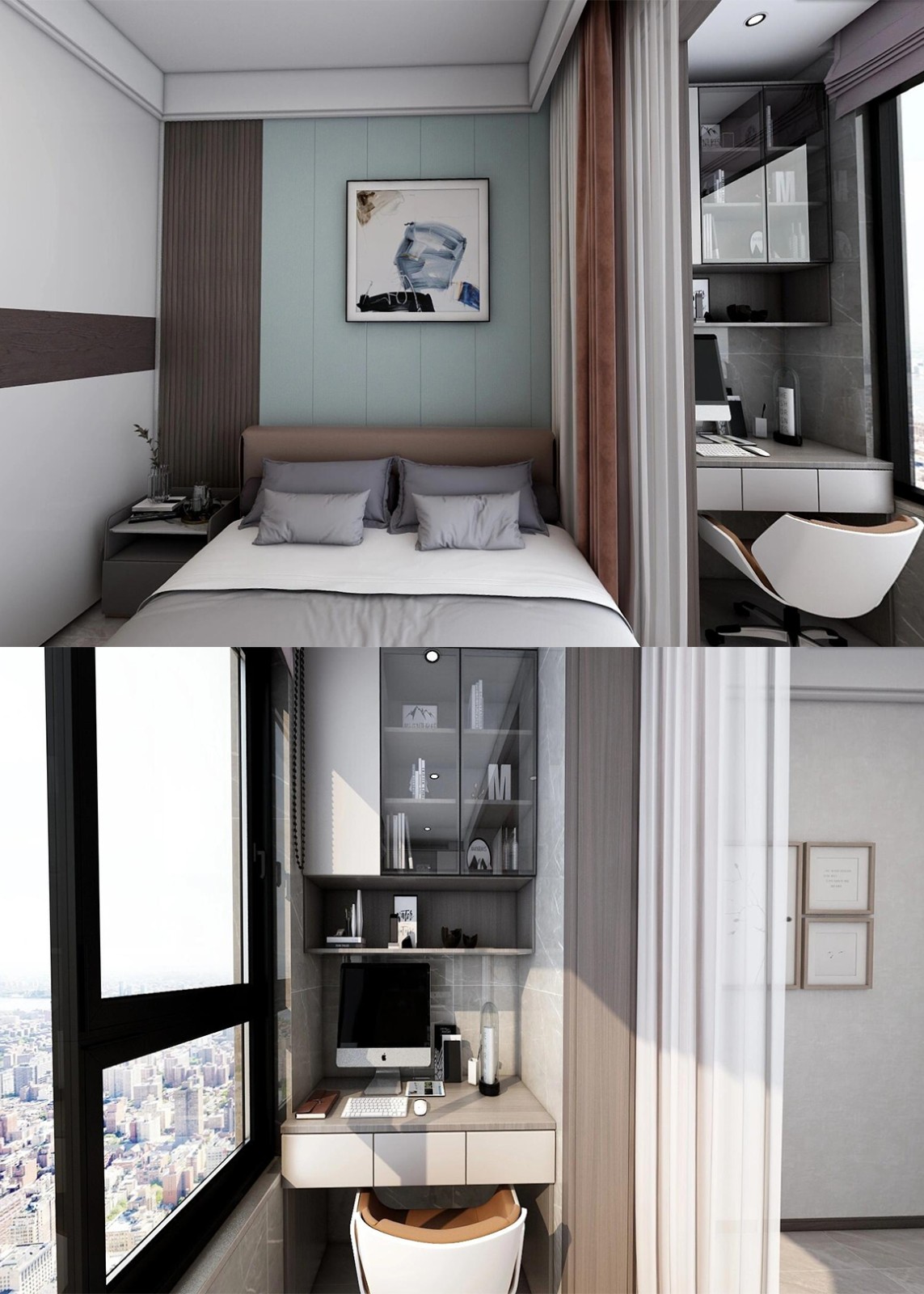 - 次卧温馨如梦,阳台化作小小书房,墨香与书香交织,编织着生活的诗意。